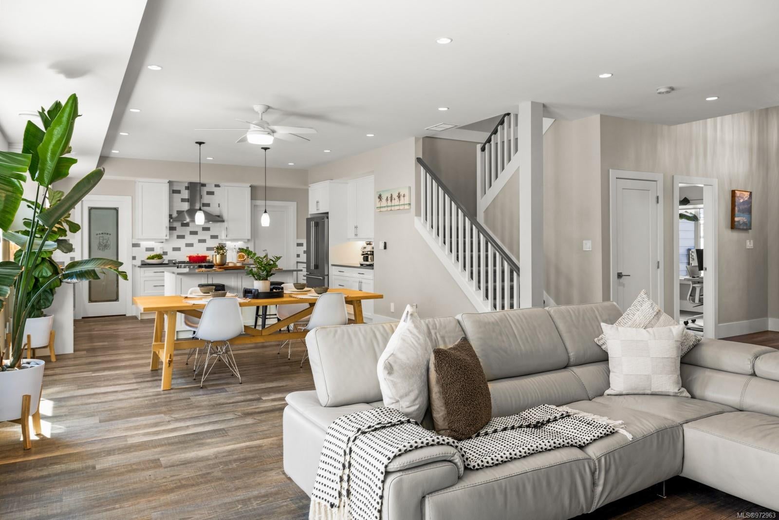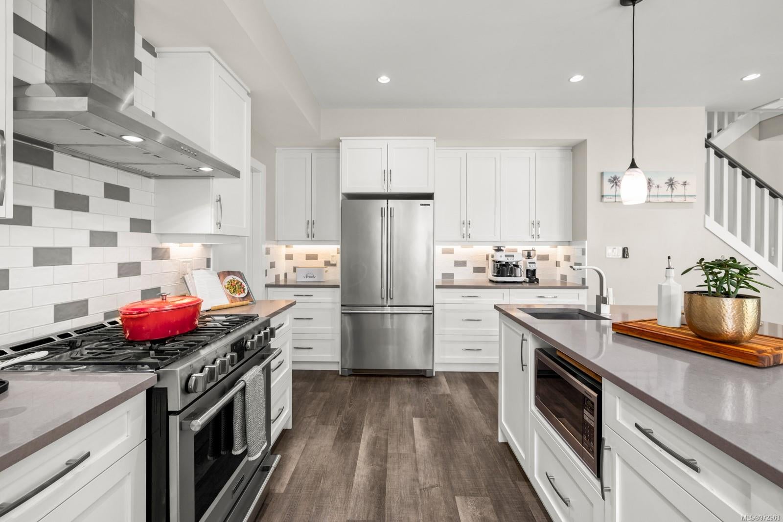 Welcome to 309 Lone Oak, a stunning West Coast contemporary home in the desirable Enclave. This custom-built house offers over 3,200 square feet of meticulously finished space, with 4 bedrooms, 4 bathrooms, a den, and an office, plus a private suite above the garage. Enjoy the oversized garage, a massive kitchen with granite counters, two sinks, new appliances, and a walk-in pantry. The living area flows seamlessly into a private yard backing onto the forest, with a fenced patio, hot tub, and parkland views—ideal for families or pets. Upstairs, find three bedrooms, a spare bathroom, a laundry room, and a gorgeous master with granite counters, a walk-in closet, a 5-piece ensuite with a tub, and heated floors. Modern conveniences include a heat pump, gas fireplace, BBQ box, on-demand hot water, and irrigation. Additional features include an EV charger, permanent Christmas lights, and garage doors with backup power. No need to transfer tenancy, making this an easy move. It won’t last—come and start enjoying modern life.