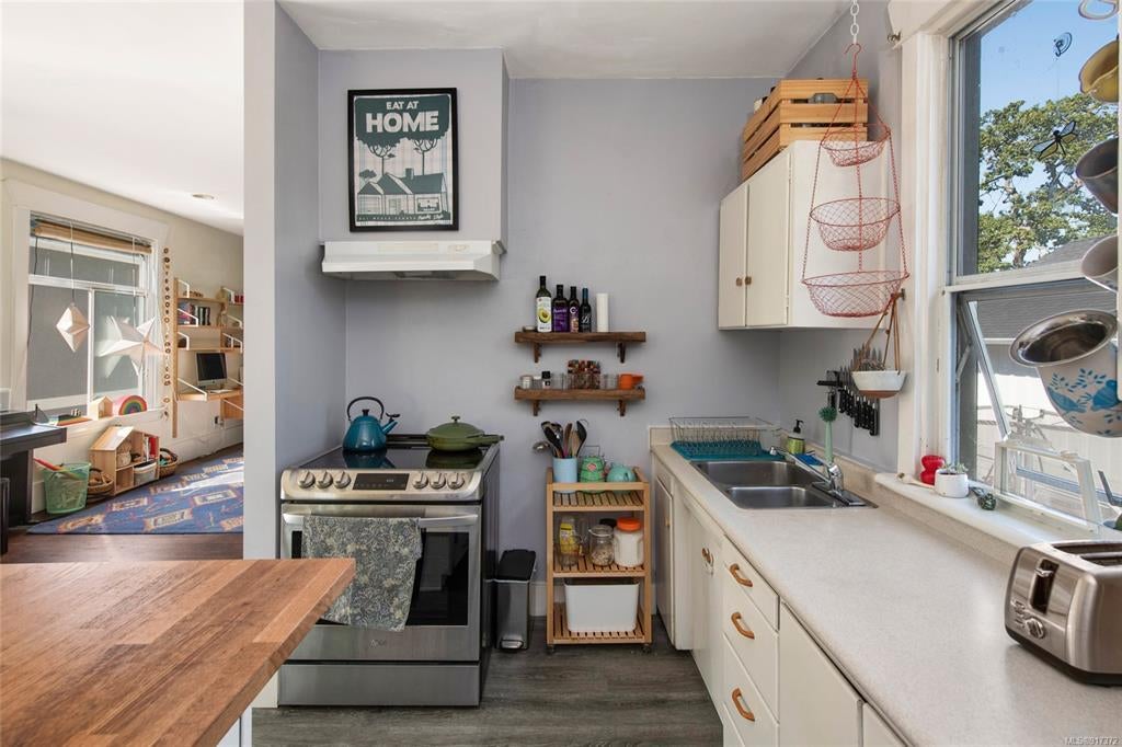Welcome to this cozy & charming 1920s character home in the sought-after Oaklands area! High ceilings and big bright windows throughout combine to make this space beautifully light and airy. Perched on top of a high rock to enjoy the surrounding views & outdoor space, including a lovely south-facing backyard that backs on the Oaklands school field. This enchanting home has a well-designed entryway and an open, functional living space. The main bedroom is a very good size and this is ideal for a small family looking for one-level living. Additional features include a huge crawl space (also a walk-in workshop) and a small detached garage which could be upgraded into a driveway, workshop or bring your own idea. Centrally located with easy access to all amenities including Hillside mall, parks, schools, and restaurants.